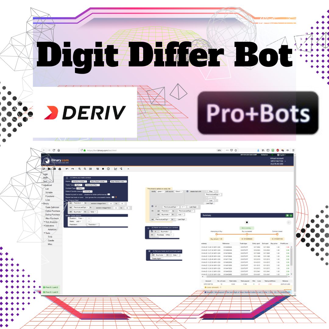 Whether you’re a beginner or an experienced trader, the Digit Differ Trading Binary Bot can help streamline your trading process and increase your chances of success in the binary options market. It’s a valuable tool for those who want to save time, reduce emotional trading, and implement systematic trading strategies.
