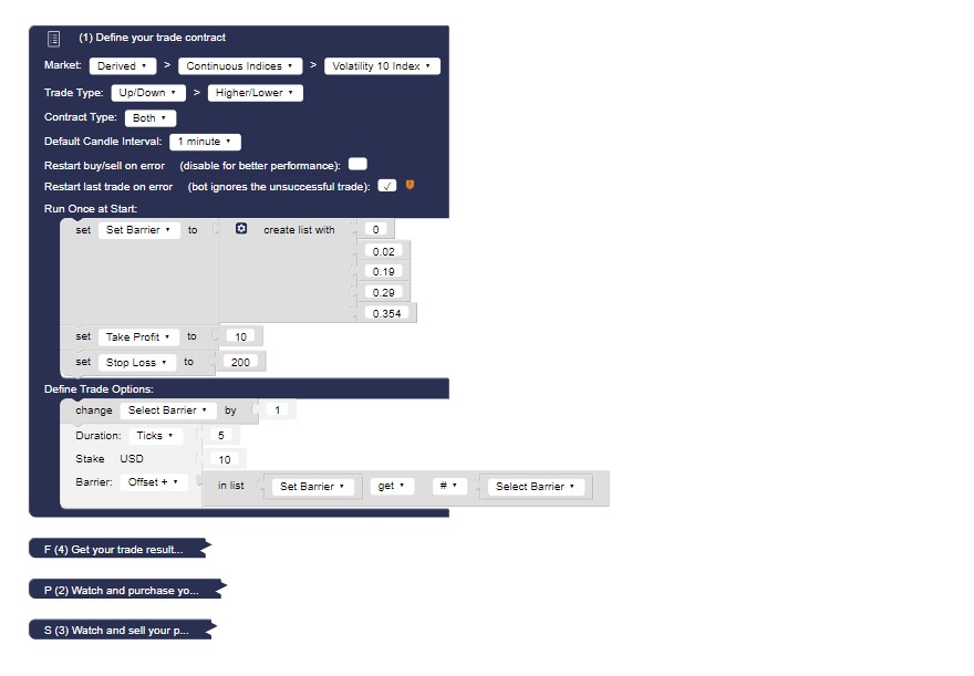 NB: since this bot use barrier offset changing strategy to recover with the same stake, you need to always cross check with the Smart-trader platform. Then Adjust the correct offset to recover the loss.